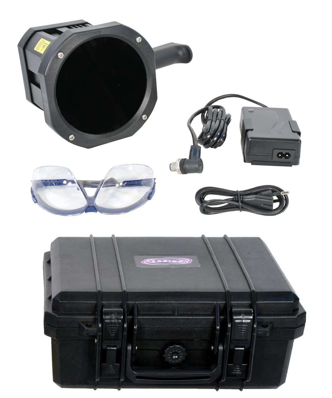 The Labino Pegasus Crime Kit is a professional forensic lighting solution designed for crime scene investigators and forensic laboratories. It includes three high-intensity handheld LED floodlights that together cover seven different wavelengths: UV (365 nm), Blue (455 nm), Cyan (505 nm), Green (530 nm), Amber (590 nm), Red (625 nm), and White light. This broad spectrum allows investigators to detect and analyse a wide range of evidence types under various lighting conditions.